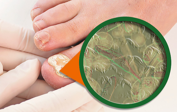 3. Regeneracja i ochrona przed nawrotem infekcji – przywrócenie naturalnego, zdrowego wyglądu skóry i paznokci. Odżywienie i odbudowa zainfekowanych, a nawet gnijących tkanek. Wytworzenie bariery ochronnej na powierzchni tkanek uniemożliwiającej ponowne zakażenie.